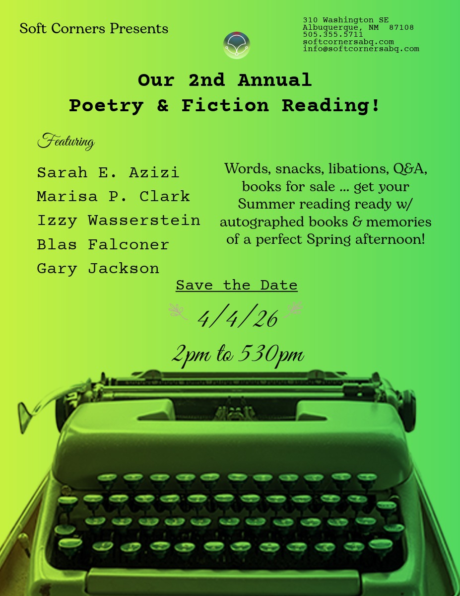 Rent Soft Corners for YOUR events, and come out for our art shows, poetry and prose readings, book launches, soirees, and more ...!