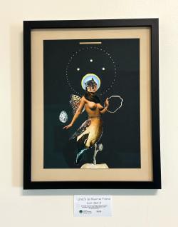 These one-of-a-kind collages are odd and absurd. Inspired by the Dada movement, they are full of whimsy…They are nonsensical and bizarre; they reveal themselves as dream-like symmetries and asymmetries of decadence. The titles can explain who or what they are, but much is left unsaid, to let your imagination play, frolic, and find new points of intrigue in these surreal-ish compositions.